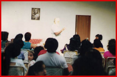BABAJI's body is enveloped in light giving Satsang; you can only see his arms.