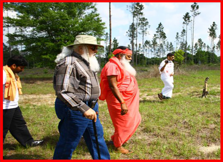 Following SWAMIJI's belssing of the site, BABAJI and SRI GANAPATI SACHCHIDANADA SWAMIJI walk the land at the proposed site of the new Ashram.